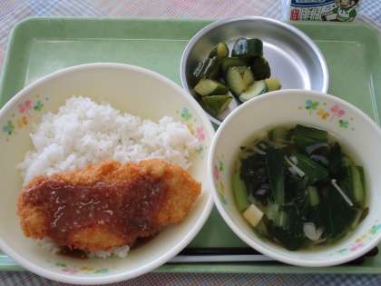 今日は、鶏むね肉にパン粉付けをし、チキンカツを作りました。今日のソースは、赤みそ、みりん、しょうゆ、酒、さとう、ごまでごまみそだれを作りました。ごまは、すって香りを出しました。