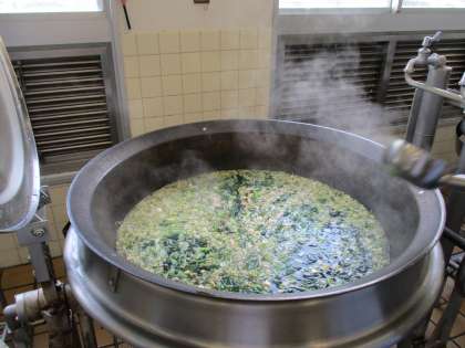 【作り方】きゅうりは乱切りにする。湯を沸かし切ったきゅうりを入れてすぐにザルにあげる。調味料とにんにくをすりおろしたものを混ぜ合わせ弱火にかかける。その中にさっと湯通ししたきゅうりをくわえてあえる。