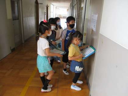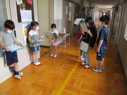 今日の学校たんけん、おにいさん、おねえさんとして、がんばりましたね。学校のいろいろなばしょをしっかりとせつめいすることができました。これからも、1年生がこまっていたら、たすけてあげてくださいね。学校たんけんのあとのおりがみのじかんもたのしくすごせましたね。