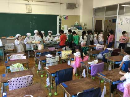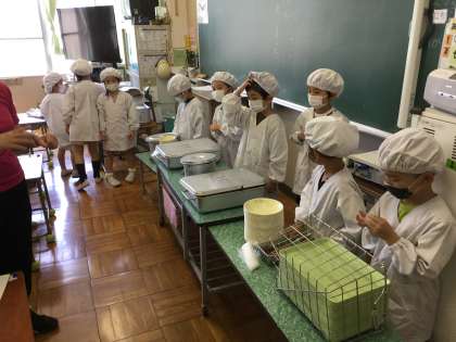 1年生の給食が始まって早一ヶ月。もう自分たちで準備ができるようになりました。給食当番も2周目です。当番の子たちも、待っている子たちもたいへん静かに落ち着いて行動することができました。大変立派です。