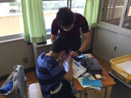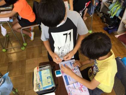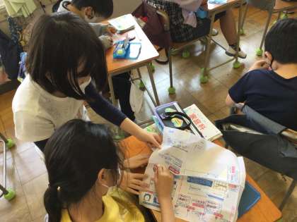 「ひと針に思いを込めて」針と糸を使って作品を作ります。今日の学習では練習布を用いて玉止めなどの練習をしていました。友達と協力しながら一緒になってがんばっていきましょう。