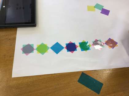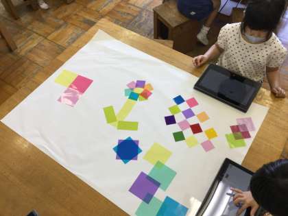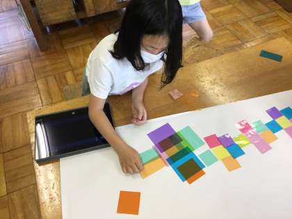 重ねることで見えてくる新しい色や形や見え方の変化をたくさん見つけることができました。