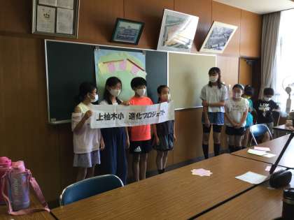 今年度、代表委員会では子供たちから「もっとこんな学校にしたい!」、「今、こんなことを課題に感じているよ。」という意見を集め、それを自分たちの問題として捉え、解決できるような取り組みを行っています。代表委員会が呼び掛けて、全校児童が課題を自分の問題として捉え、みんなで課題解決に向けて取り組みます。その名も「上柚木小進化プロジェクト」!!