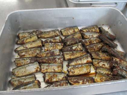 今日は、さんまの筒切りを時間をかけてよく煮て「さんまのしょうが煮」を作りました。今日のはし使いは、「ほねをとる」でした。さんまの真ん中にあった骨を上手にとれましたか?魚をゆっくり時間をかけて煮たことで、骨まで柔らかく食べられる状態になりました。教室をまわっていると、骨まで食べられたよ!という声がたくさん聞こえてきました。