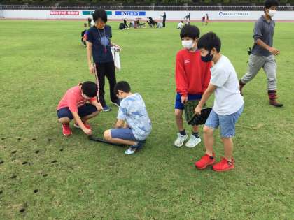 7月5日(月) 6年生 地域連携「上柚木競技場の芝生植え」