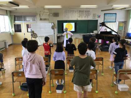 「すぐに歌ってくれる学校は少ないです。4年生素晴らしいですね」と褒めてもらいました。