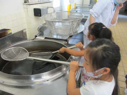 今日は、学校探検の最後の場所「給食室」