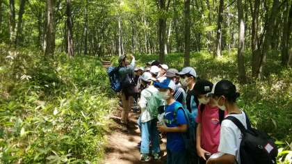 熊避けの鐘があります。熊の性質についてお話を聞いています。
