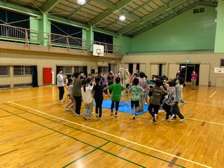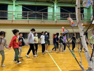 マイムマイム、ジェンカ、この学年の子たちは男女の区別なく本当に楽しく関われますね。とっても楽しい表情で踊ってます。