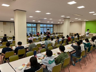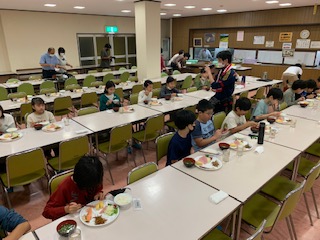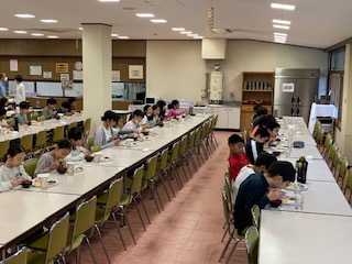 朝食です。昨日の夕食から12時間以上経っているので、子供たちはお腹が空いているのかと思っていましたが、意外と少食な子たちが多かったです。お昼は自分たちで作るカレーライスです。作る方が楽しみかな?