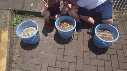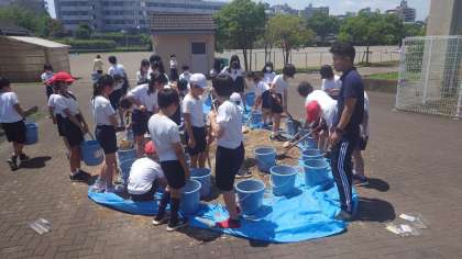 5年生はバケツ稲づくりをします。