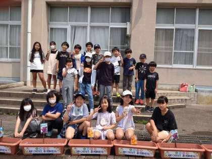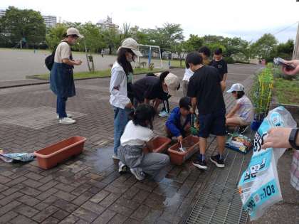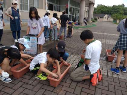 先日『人権の花運動』で学校へ納品され、ゆずっこひろばへご提供いただいた花の種(マリーゴールド、おしろい花、アスター)を植える活動をしました。