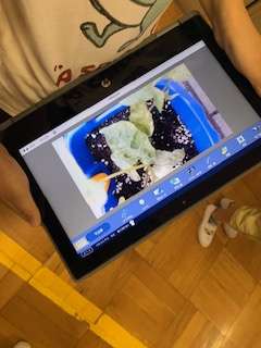 今日の学習では、タブレットで写真を撮ったり、お世話をしたりしました。