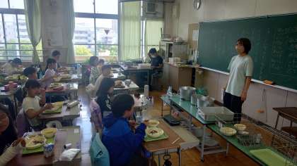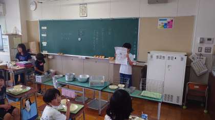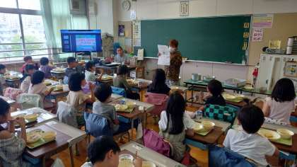 給食委員会の子供たちが先週各教室をまわって説明しました。