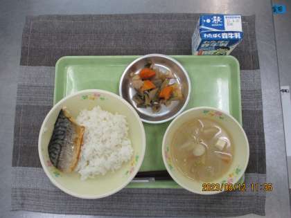 ◆今日の給食◆ ・ごはん ・さばの塩焼き ・筑前煮 ・呉汁 ・牛乳