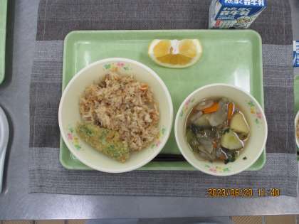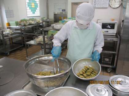 6月20日(火)今日の給食 公開日 2023/06/20 更新日 2023/06/20 給食 ◆今日の給食◆ ・とりにくしょうがごはん ・ささかまの磯辺揚げ ・けんちん汁 ・みしょうかん ・牛乳 2枚目の写真は、調理員さんが磯辺揚げを配缶している様子です。 できるだけ揚げたてのものを提供できるよう、配缶直前に揚げています! いいね(0)