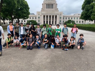 最後に国会議事堂をバックに記念撮影。雨は降ってません。この後、バスで皇居を回りながら北の丸公園へ向かいます。