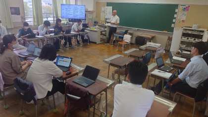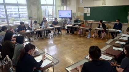 上柚木中学校、愛宕小学校の先生方に本校に集まっていただき、小中一貫教育について話し合いました。