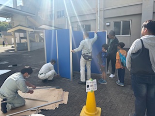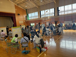 今回は『大人も こどもも!防災教室』ということで、体育館では大人が100名ほど、校舎1階では、こどもたちが100名ほど参加しています。