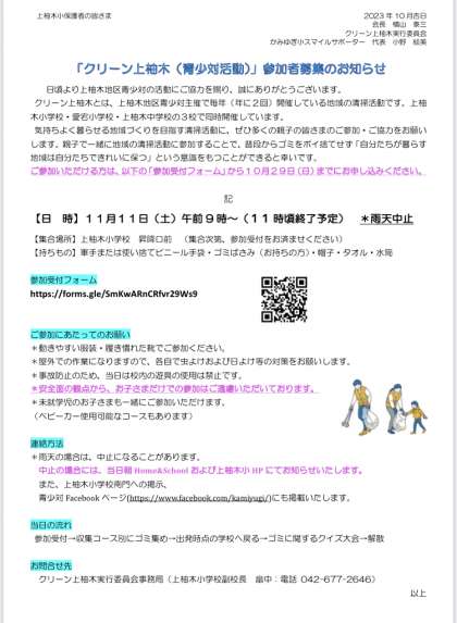 11/11(土)クリーン上柚木参加者募集のお知らせ
