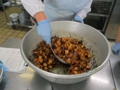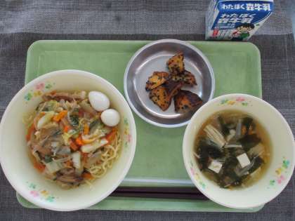 10月13日(金)今日の給食 公開日 2023/10/13 更新日 2023/10/13 給食 ◆今日の給食◆ ・あんかけやきそば ・わかめスープ ・大学芋 ・牛乳 秋といえば、さつまいも! さつまいもといえば、大学芋! 今日の大学芋は、 さつまいもを4回くらいに分けて揚げ、 熱々のタレと絡めて仕上げました。 釜でタレを絡めると、さつまいもの形が崩れてしまうため、 少量ずつ、ボールでタレを絡めました。 そのおかげで、味も見た目もよい大学芋になりました。 いいね(0)