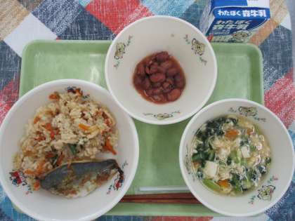 6月13日(木)今日の給食 公開日 2024/06/13 更新日 2024/06/13 給食 ◆今日の献立◆ ・とりにくしょうがごはん ・あじの香味焼き ・煮豆 ・かきたま汁 ・牛乳 とりにくのしょうがごはんは、程よくショウガの風味が感じられました。野菜・肉・油揚げを入れたり、醤油などでしっかりと味付けをしたりなど、食べやすくなるように工夫しました。子どもたちも美味しいといいながら食べてくれました。 いいね(0)