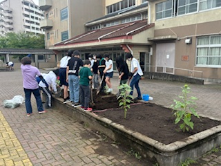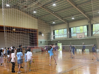 愛宕小学校の6年生と一緒に上柚木中学校の部活体験をしています。