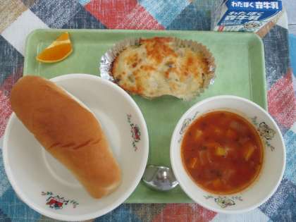6月26日(水)今日の給食 公開日 2024/06/26 更新日 2024/06/26 給食 ◆今日の献立◆ ・ミルクパン ・マカロニグラタン ・ミネストローネ ・バレンシアオレンジ ・牛乳 ・子どもたちは、パンにグラタンをのせたり、パンをミネストローネにつけたりなど 様々な食べ方で美味しく味わっていました。 いいね(0)