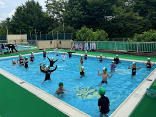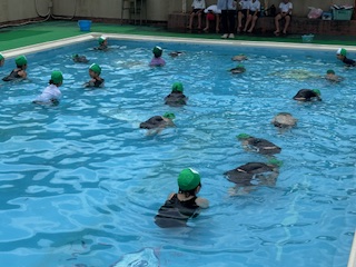 「大の字浮き」「クラゲ浮き」「ダルマ浮き」上手に水に慣れ親しんでいます。