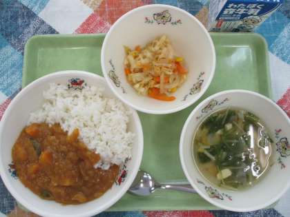 6月27日(木)今日の給食 公開日 2024/06/27 更新日 2024/06/27 給食 ◆今日の献立◆ ・八王子産ズッキーニのカレーライス ・野菜サラダ ・豆腐と水菜のスープ ・牛乳 今日のカレーはバターを使用しなかったので、 少し辛かったようです。 「辛いけどおいしいからたくさん食べた!」と言ってくれた児童が多く、 うれしい気持ちでいっぱいです。 カレーライスにはじゃがいも・にんじん・たまねぎなど定番の野菜や、 八王子産のズッキーニを使いました。 いいね(0)