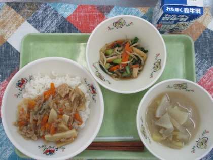 6月28日(金)今日の給食 公開日 2024/06/28 更新日 2024/06/28 給食 ◆今日の献立◆ ・小田原蒲鉾丼 ・煮びたし ・根菜汁 ・牛乳 小田原蒲鉾丼は小田原蒲鉾の他に豚肉、にんじん、たまねぎ、ながねぎ、しらたきを使用しています。煮びたしや根菜汁も具だくさんで、野菜たっぷりです。今日の給食は1食あたり約140gの野菜が使われています。(1日に必要と言われている野菜の量は350gです。) いいね(0)