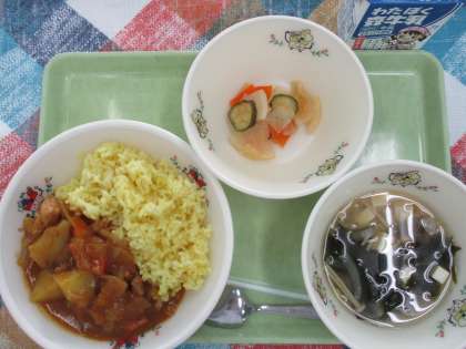 ◆今日の献立◆ ・バターチキンカレー ・野菜のピクルス ・わかめスープ ・牛乳