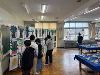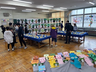6年生が「作品」の展示を鑑賞しています。本日の児童鑑賞は時間ごとに入れ替えて、全学年が1・3・5年生の作品を鑑賞します。この後、11時から「音楽」の鑑賞です。