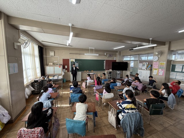 今日は2年生で、教育実習生が道徳の授業をしています。約束やきまりを守って、みんなが使うものを大切にしようとすることを考えて、話し合います。