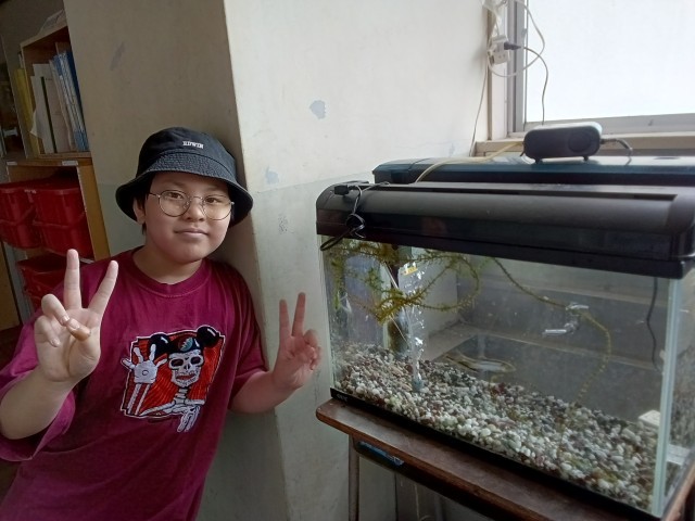 きれいになった水槽に魚が戻りました。魚が元気に泳いでいる様子を見ることができるようなりました。