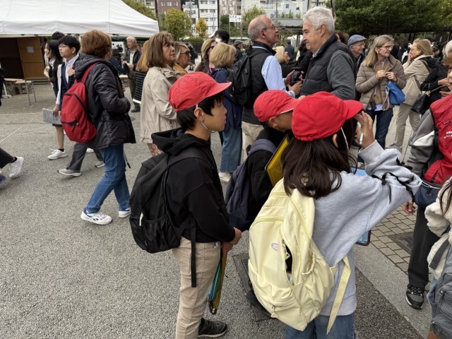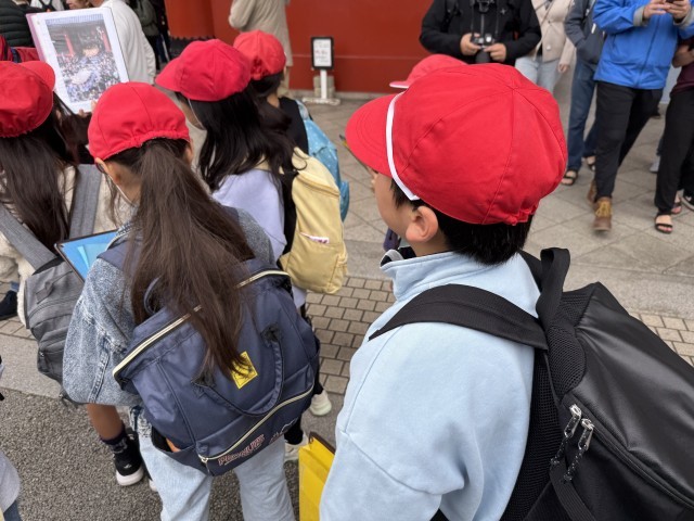 ガイドさんの話をしっかり聴いて、学習しています。みんな、とっても真剣です。