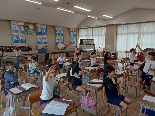 音楽の学習で、リコーダーの高いドやレの音が出せるようになってきました。もうすぐ「アチャ パチャ ノチャ」を始めから終わりまで吹けそうです。