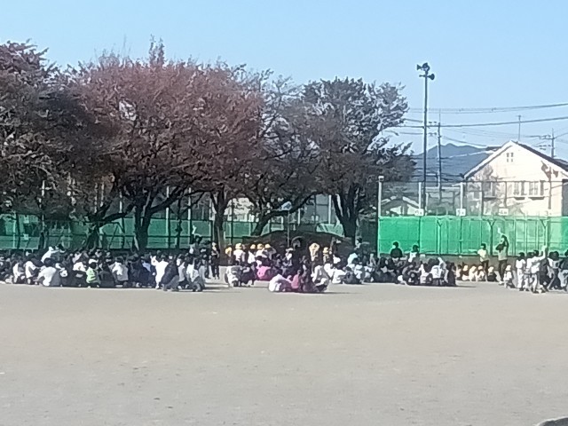 休み時間、子供たちは校庭や教室など様々な所で過ごしています。その時に地震が起きたら、自分で考えて避難する訓練でした。先生がいなくても、廊下で頭を守る姿、校庭の中央に集まる姿が見られました。一番大切なものは命です。これからも訓練を重ねながら、自分の命を守れるように育てていきます。