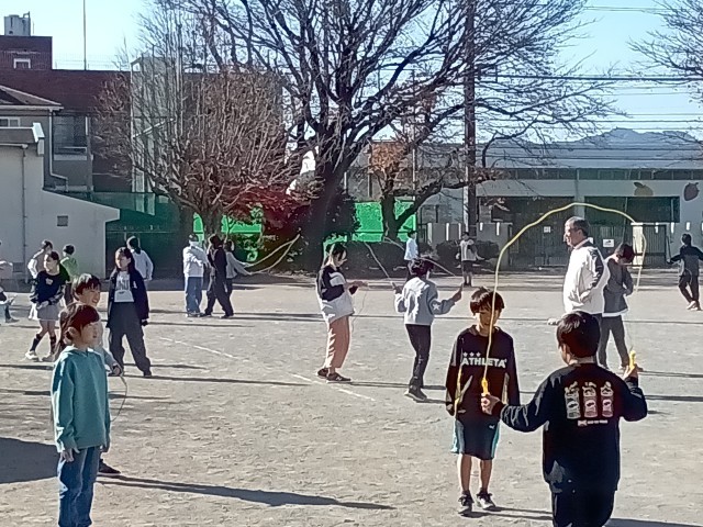 中休みに全校児童で短縄に取り組んでいます。なわとびを通して、自然と異学年での交流が始まるのが、松枝っ子のいい姿です。御家庭で短縄の準備をしていただきまして、ありがとうございます。