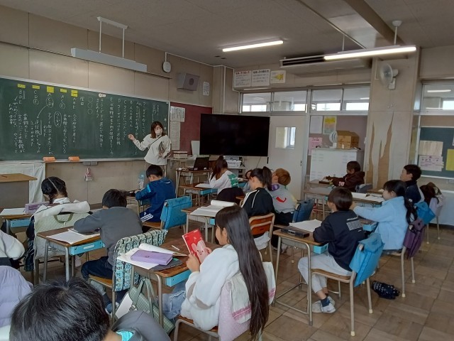 国語の教材文から大事な言葉を使って、内容をまとめていました。子どもたち一人一人が話の内容を読み取り、上手に要約していました。