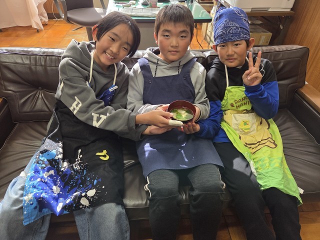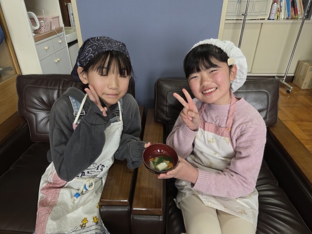 2学期最後の調理実習で、お雑煮を作りました。だしをとり、おもちを焼いて作りました。おいしくできました。ぜひお正月にお家でも作ってほしいです。
