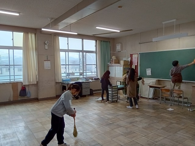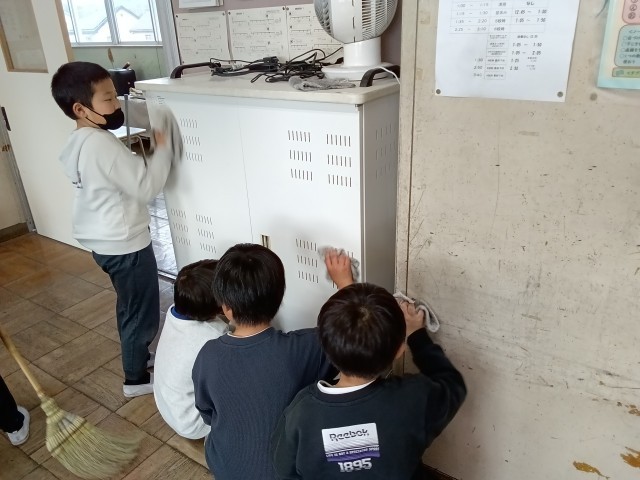 1年生と3年生大掃除の様子です。教室から机や椅子を出して、隅々までお掃除していました。きれいな教室で、3学期を迎えましょう。