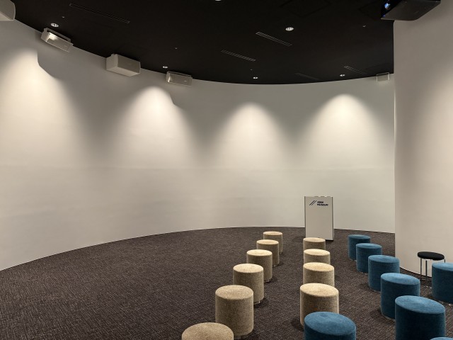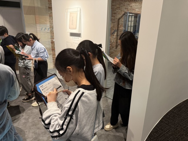 KDDIミュージアムの見学ツアーが始まりました。みんな、真剣にメモを取っています。