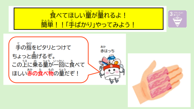 1回の食事の量の目安を知る方法に「手ばかり」があります。