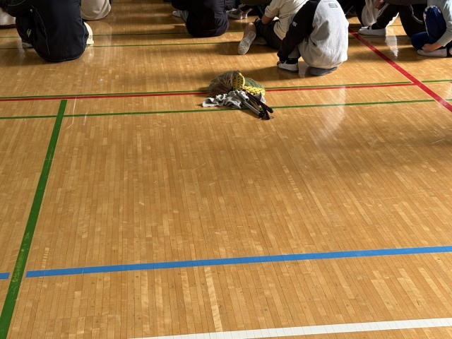 今日は、掃除の時間に避難訓練がありました。放送室が火事の想定なので、放送機器が使えない状況での訓練です。松枝小学校のみんなは、しっかりと落ち着いて行動できました。