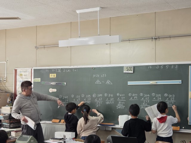 3けた×2けたの算数のおさらいに取り組んでいました。みなよく頑張っています。3年生で学習したことをしっかり身に付けて、4年生になりましょう。