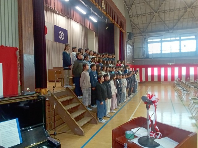 24日に行われる卒業式に向けて、予行練習を行いました。5年生も6年生も真剣に取り組んでいます。