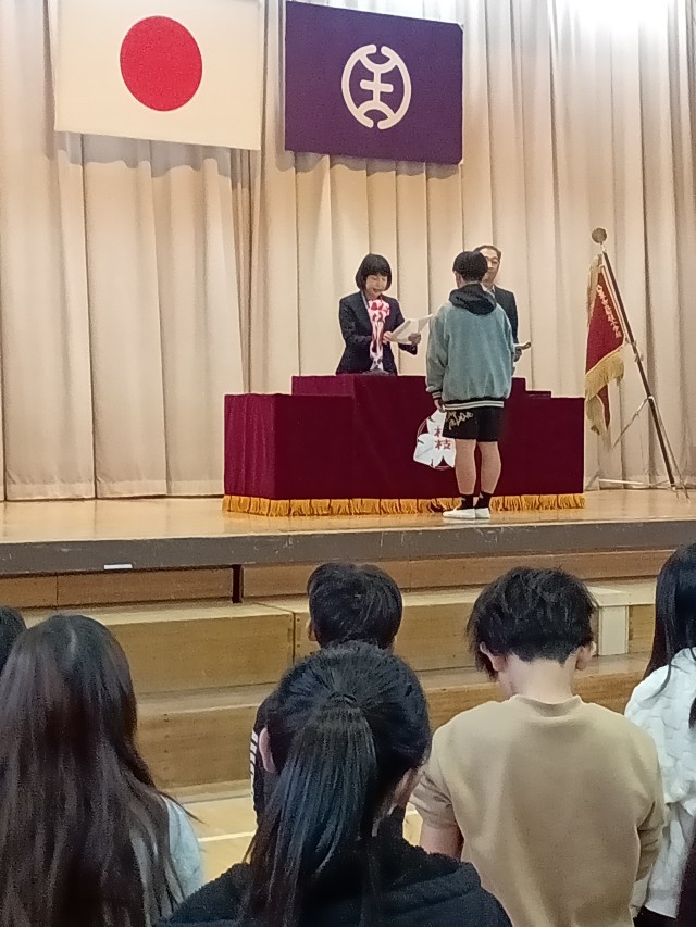 今日は1年間のまとめ、修了式です。各学級の代表児童が校長先生から修了証を授与されました。