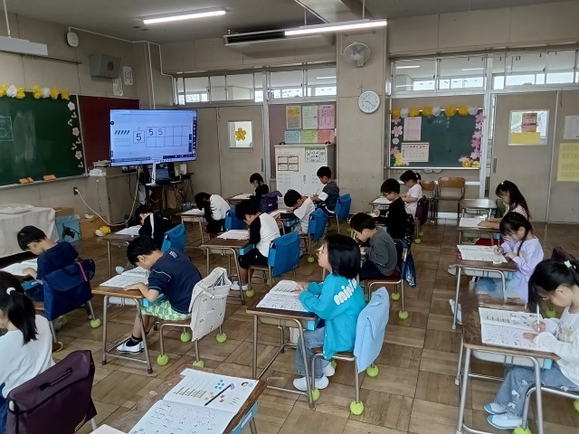 数字の書き方を練習していました。先生に言われた「5はたまごが落ちないよう」を意識して書いていました。