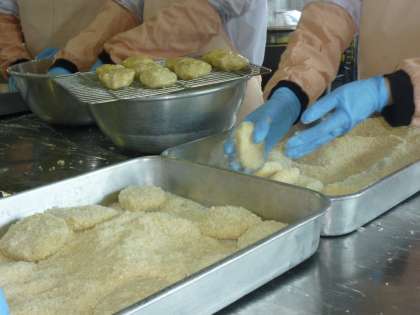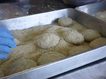 調理員さんが一つずつ丁寧に成型した